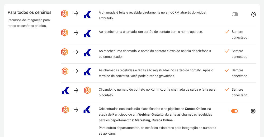 Custom Kommo Integration Settings for Selected Departments