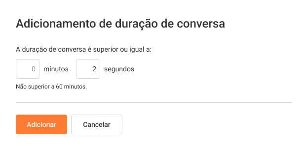 Na janela que se abre, especifique a duração desejada da chamada (de 1 segundo a 60 minutos) e clique em Adicionar.