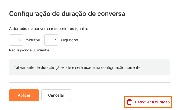Para alterar ou excluir uma duração adicionada, no filtro Duração da chamada passe o mouse sobre o valor desejado e clique no ícone de engrenagem à direita do tempo.