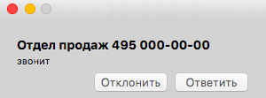 O princípio de funcionamento é que, em um softphone ou telefone SIP com visor, o funcionário pode ver o nome do departamento para o qual a chamada foi direcionada. Aqui está um exemplo de uma chamada recebida exibida em um softphone: