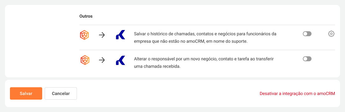 - ao transferir uma chamada, é possível alterar o responsável por um contato, lead ou tarefa para aquele que falou por último com o cliente;