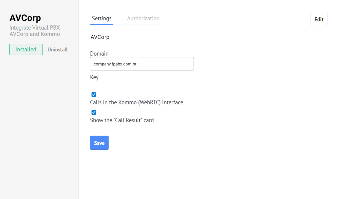 Guia de integração do PABX Virtual com o Kommo