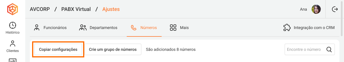If several of your numbers have similar but not identical settings (for example, the greeting is the same for all numbers, but the schedule is different), you can copy the required settings from one number to others. This allows you to quickly and flexibly set up 2 or more numbers but still leaves the opportunity to change any of them individually.