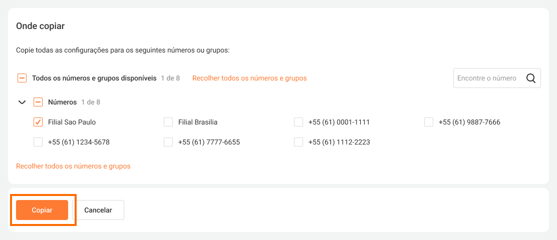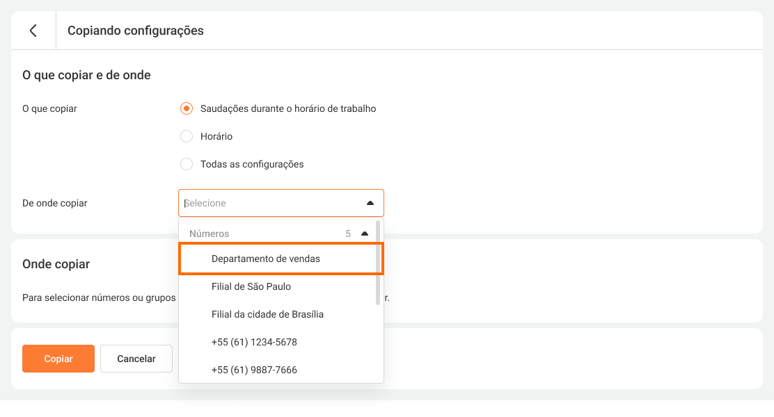 3. Select from which number or group of numbers you want to copy the selected settings.