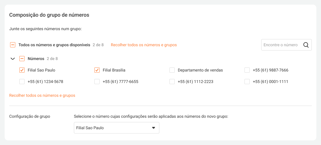 3. Select the number the settings of which you want to apply to all numbers in the created group.