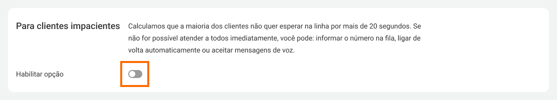 2. Localize e ative a opção Para clientes impacientes na parte inferior das configurações.