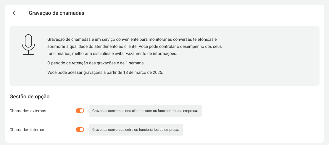 You can temporarily disable Call Recording if it is required for a special case. Please note that disabling recording in this section does not stop billing but only allows you to temporarily disable it. If you want to disable recording permanently, disable it in the Plan section.