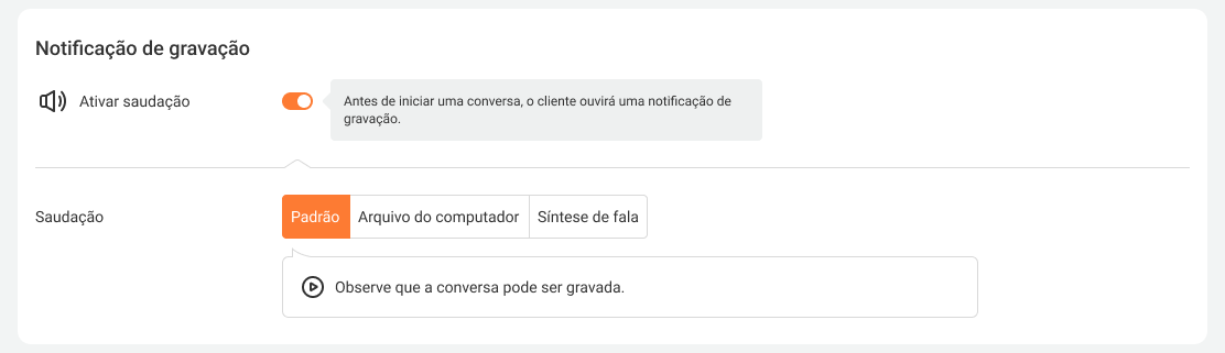 Even for outgoing calls, your customer and your employee will hear a warning about recording. By default, Cloud PBX will play a standard message, but you can replace it at any time with your file from the computer or voice the recording notification text using the Text-To-Speech feature.