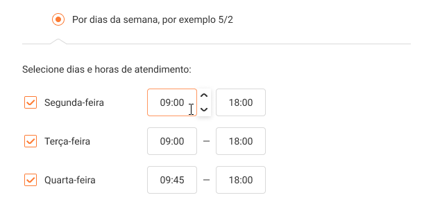 The start and end time of the working day in the cells can be entered not only from the keyboard, but also using arrows.