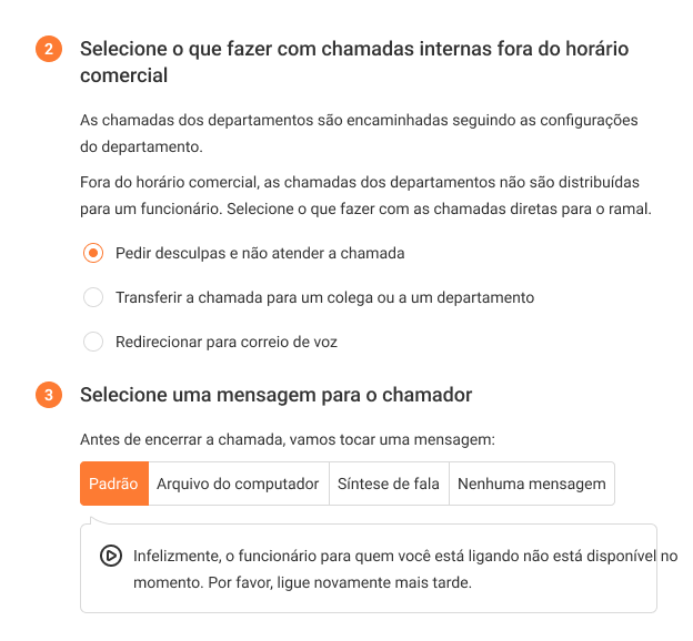- Apologize and not take the call — if direct calls to an employee do not need to be forwarded to anyone. In this case, when a direct call happens, Cloud PBX will play a message to the customer notifying them that the employee cannot answer; after that, it will drop the call, or the customer will simply hear short beeps (you can specify in the settings which option suits you best).