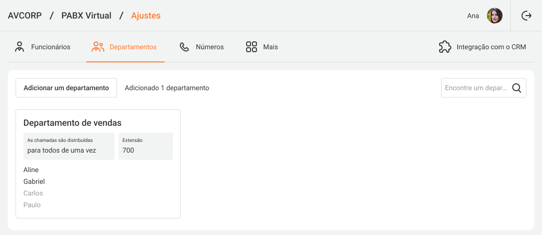 To see which employees in a department can receive calls and who does not work according to a personal schedule, go to the Departments tab. The names of managers in the department are highlighted: