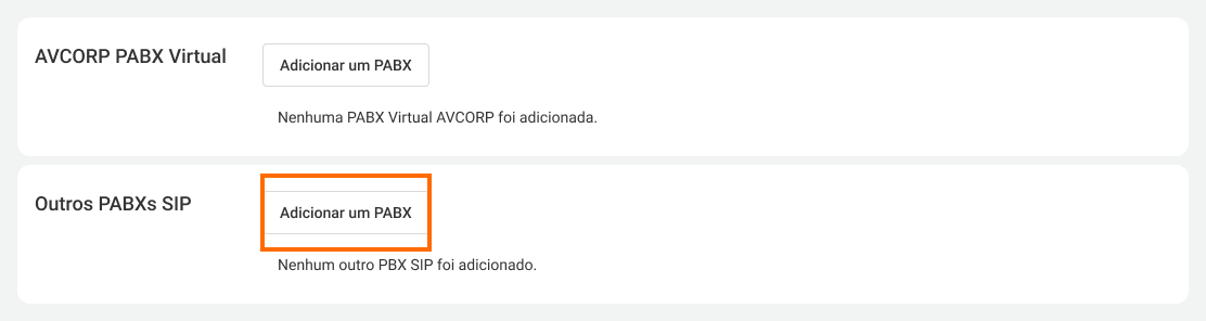 2. Clique em Adicionar PABX ao lado da opção Outros PABXs SIP.