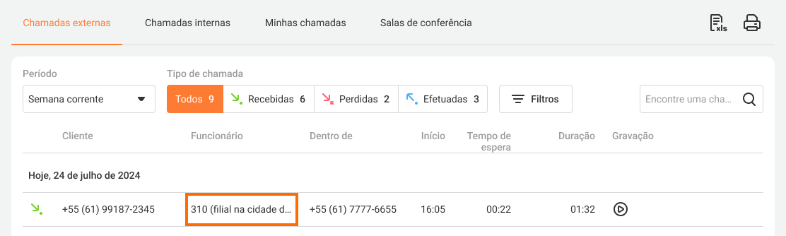 Se a sua empresa possui seu próprio PBX, você pode integrá-lo ao plano de numeração unificado do PABX móvel. Funcionários de diferentes filiais poderão realizar chamadas gratuitas e transferi-las entre si usando ramais. Essas chamadas serão gravadas e exibidas na seção Histórico.
