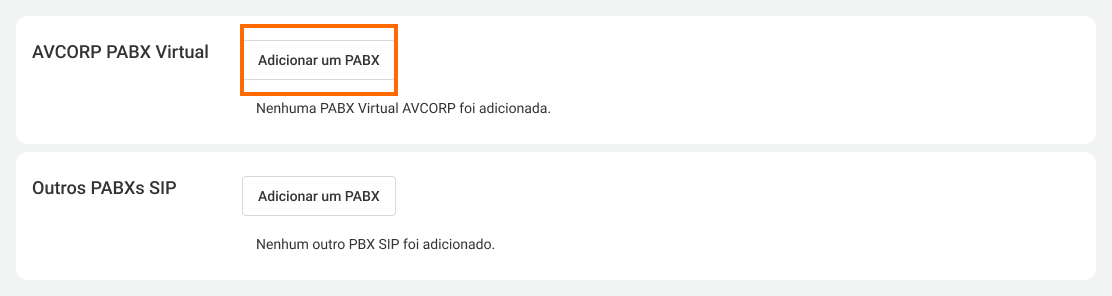 2. Clique em Adicionar PABX.